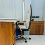 Professional wooden desks, chairs, reception counters, and workspace furniture.